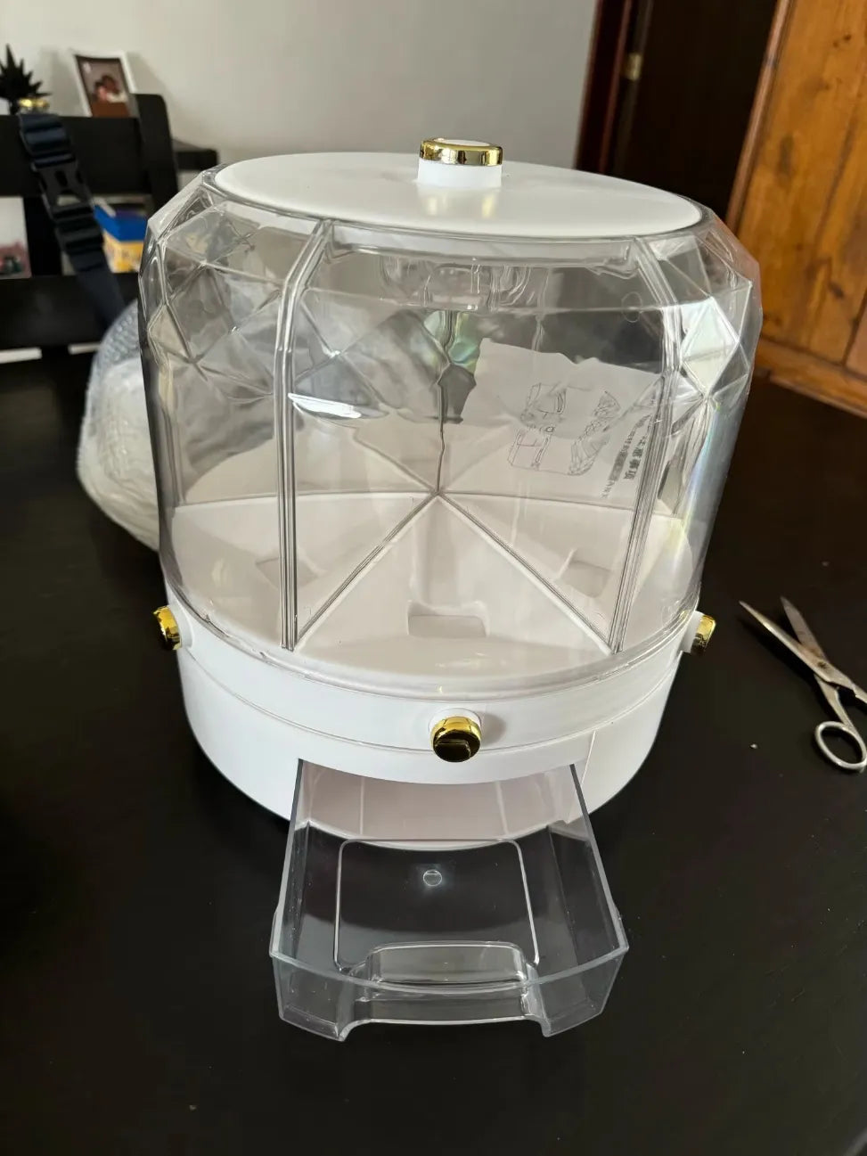 Obrót o 360° został zaprojektowany, aby umożliwić łatwy dostęp do każdej przegródki. Wystarczy obrócić górę, aby wybrać sekcję, którą chcesz użyć, co czyni go bezproblemowym i wygodnym.