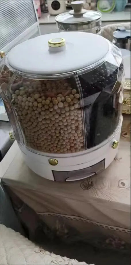 Pożegnaj się z chaosem w kuchni. Dzięki naszemu innowacyjnemu obrotowemu dozownikowi żywności, utrzymanie porządku w spiżarni nigdy nie było łatwiejsze. Zaprojektowany, aby oferować hermetyczne przechowywanie, blokuje wilgoć, aby utrzymać świeżość zbóż, płatków, przekąsek, a nawet karmy dla zwierząt. Unikalna funkcja obrotu o 360° umożliwia łatwy dostęp do każdej przegródki. Koniec z walką z torbami czy pudełkami – znajdź to, czego potrzebujesz, kiedy tego potrzebujesz. Układ z sześcioma przegródkami pozwala na łatwe przechowywanie różnorodnych produktów spożywczych, co czyni go wszechstronnym rozwiązaniem dla potrzeb przechowywania w kuchni. Ciesz się wygodą i świeżością już dziś.