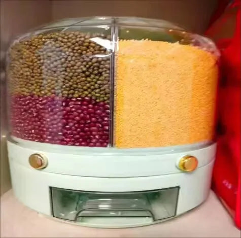 W przeciwieństwie do innych, ten dozownik oferuje obrotowy design 360° dla łatwego dostępu, zapewniając świeżość dzięki hermetycznemu zamknięciu. Jego układ z sześcioma przegródkami zaspokaja różnorodne potrzeby przechowywania, zapewniając wydajne i zorganizowane doświadczenie kuchenne.
